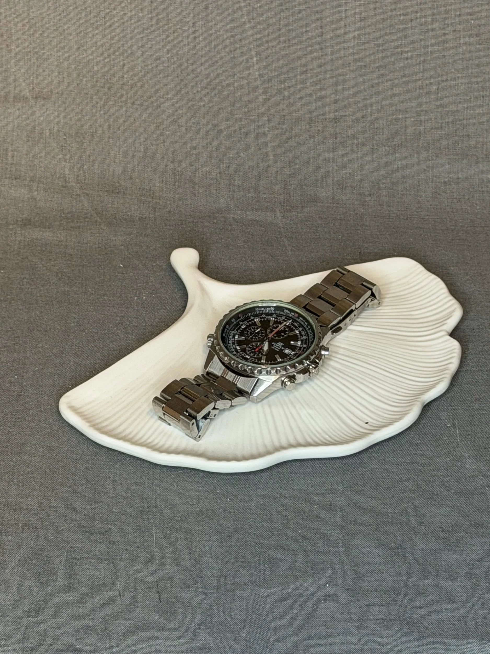 A sculptural interpretation of the iconic ginkgo leaf, this hand-cast accent dish brings a quiet sense of luxury to any interior. Crafted from a refined, stone-like composite, it offers an elegant resting place for jewellery, watches or cherished personal items.